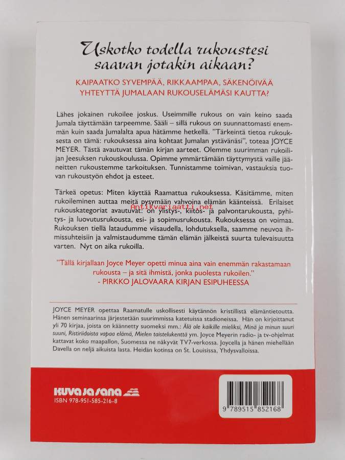 Muu(t) tekijä(t): Sini LuomaMerkinnät: omistajamerkintä leikattu pois etulehden ylälaidastaAlkuteos: The power of simple prayerAsiasanat: rukoukset, rukous