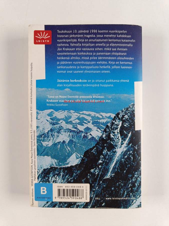 Muu(t) tekijä(t): Liisa PaakkanenMerkinnät: omistajamerkintäAlkuteos: Into thin airAsiasanat: muistelmat, onnettomuudet, vuorikiipeily