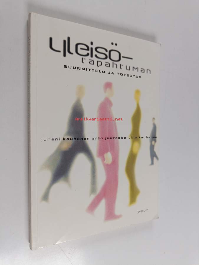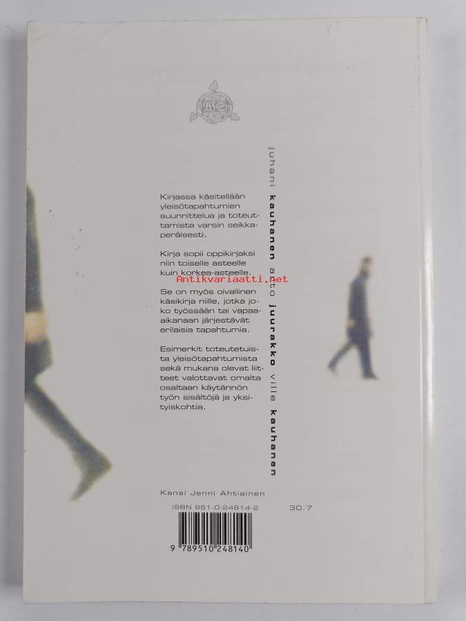 Muu(t) tekijä(t): Arto Juurakko, Ville KauhanenMerkinnät: omistajamerkintä (leima)Asiasanat: markkinointi, johtaminen, arviointi, budjetointi, seuranta, suunnittelu, juhlat, projektit, kulttuuritoiminta, kulttuuritapahtumat, tiedotus, riskienhallinta, tapahtumat, järjestäminen, festivaalit, luvat, ohjaus (neuvonta ja opastus), tapahtumatuotanto, yleisötilaisuudet, neuvottelut, ulkoinen viestintä, tapahtumamarkkinointi, toteuttamissuunnittelu