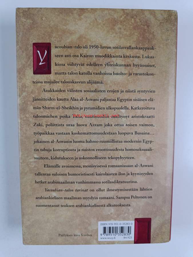 Muu(t) tekijä(t): Sampsa PeltonenAlkuteos: Imarat Ya'qūbyanAsiasanat: Egypti, Kairo