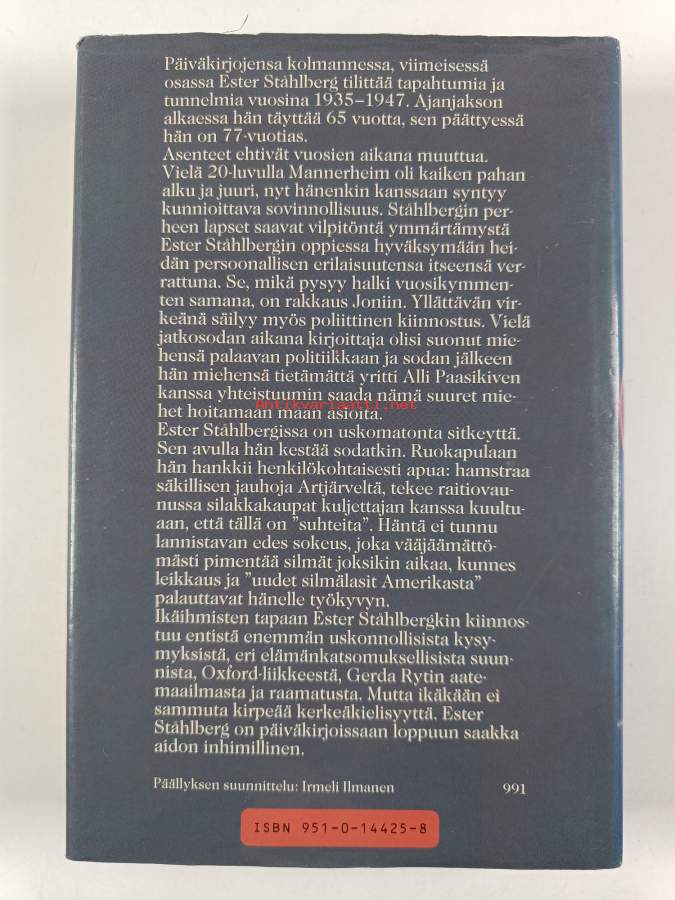 Ester Ståhlbergin sodan ja rauhan vuodet : päiväkirja 1935-1947