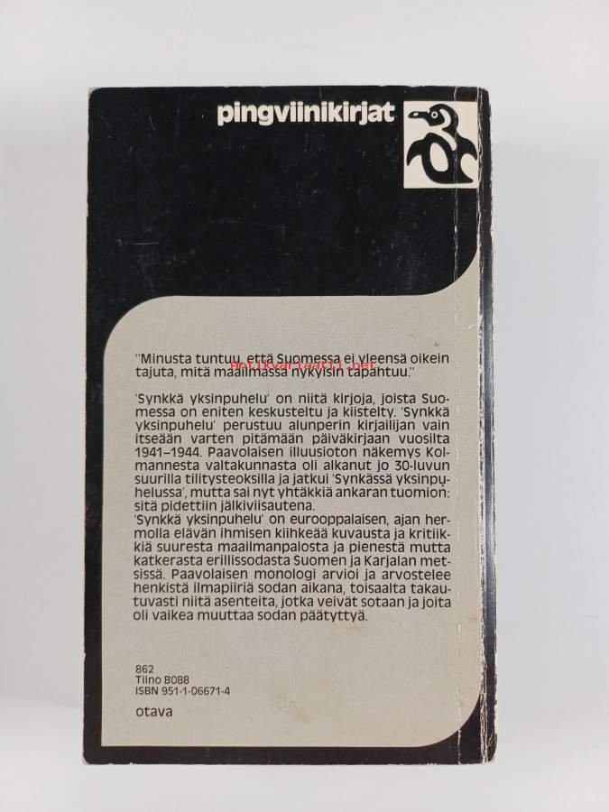 Synkkä yksinpuhelu : päiväkirjan lehtiä vuosilta 1941-1944