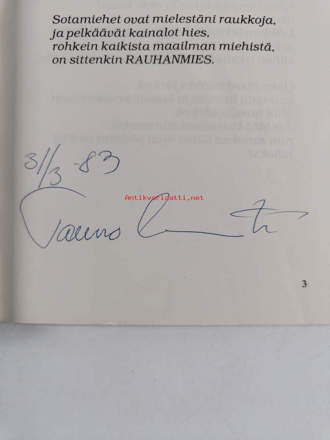 Hyvä. Tarkempi kuntoluokka: K3+ ; Hieman kulumaa. tekijän signeeraama