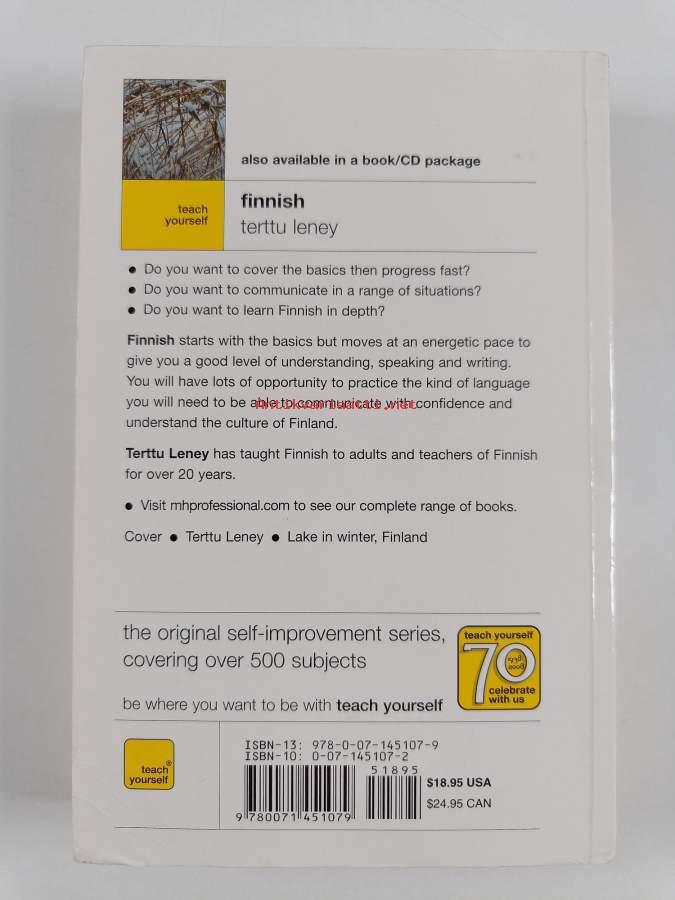 Sarja: Teach yourselfAsiasanat: suomen kieli, ulkomaalaiset, itseopiskelu, finska, kieltenopetus, suomi toisena kielenä, Finnish language, språkundervisning, finska som andraspråk, utlänningar, självstudier