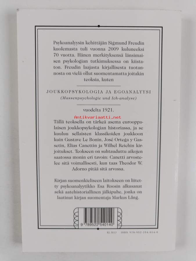 Muu(t) tekijä(t): Markus LångAlkuteos: Massenpsychologie und Ich-AnalyseAsiasanat: suggestio, psykoanalyyttiset teoriat, minä, joukkopsykologia, sosiaalipsykologia, psykoanalyysi, vietit, yksilöpsykologia, minäpsykologia