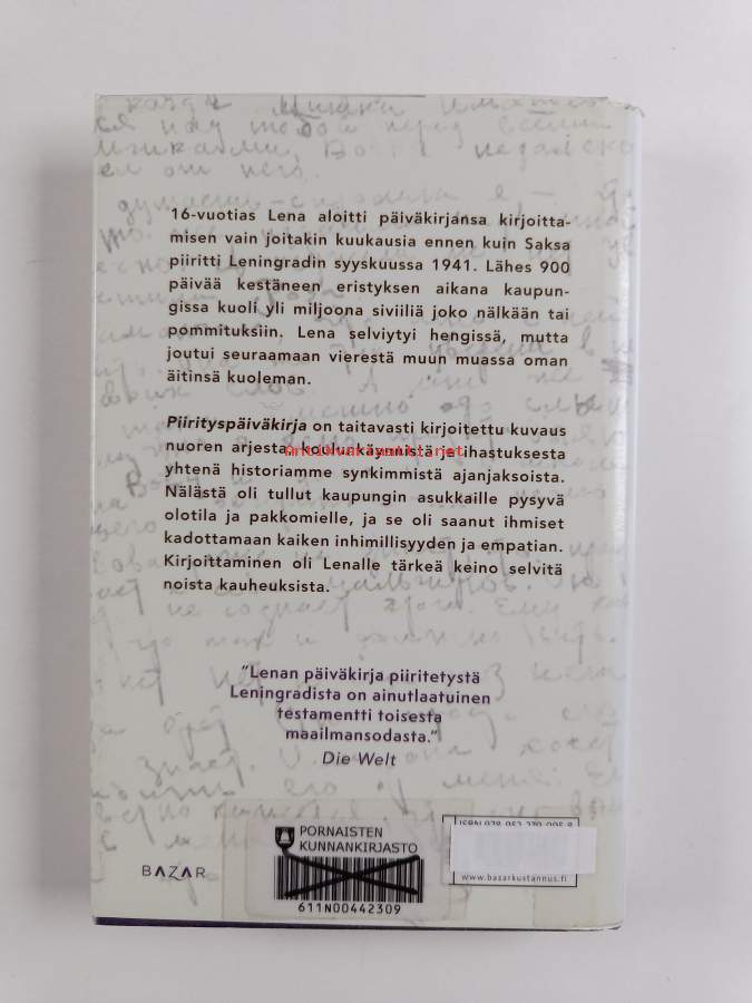 Muu(t) tekijä(t): Pauli TapioAlkuteos: Blokadnyi dnevnikAsiasanat: päiväkirjat, nuoret, tytöt, toinen maailmansota