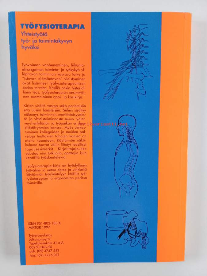 Muu(t) tekijä(t): Ritva KukkonenAsiasanat: työterveys, työkyky, ennaltaehkäisy, työelämä, kehittäminen, työyhteisöt, fysioterapia, selviytyminen, fyysinen kunto, työympäristö, fysikaalinen hoito, altisteet, terveydenhuolto, työn kuormittavuus, työtapaturmat, työterveyshuolto, ylläpito, toimintakyky, ergonomia, fyysinen kuormittavuus, ammattitaudit, coping, arbetsliv, hälso- och sjukvård, utveckling (verksamhet), fysisk kondition, förebyggande, Occupational Health, funktionsförmåga, arbetsförmåga, företagshälsovård, arbetsbelastning, arbetshälsa, fysikalisk behandling, arbetsolycksfall, arbetsgemenskaper, arbetsmiljö, underhåll (drift), yrkessjukdomar, ergonomi, Physical Medicine, Physical Therapy, fysioterapi, fysisk belastning, agens, työperäinen altistus, yrkesmässig exponering