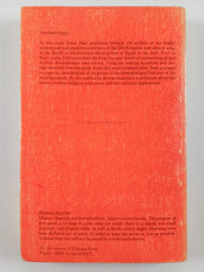 Rank and title in the Old Kingdom : the structure of the Egyptian administration in the fifth and sixth dynasties