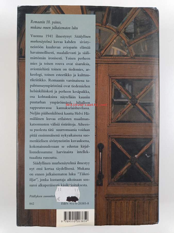Tyydyttävä. Tarkempi kuntoluokka: K2+ ; Hieman kulumaa kansissa, pienoista tahraisuutta kansissa, takana vanha hintalappu, sidos hieman näkyvissä yhdellä aukeamalla, selkämyksessä hieman vinoutta. Kansipaperin kunto: pientä kulumaa