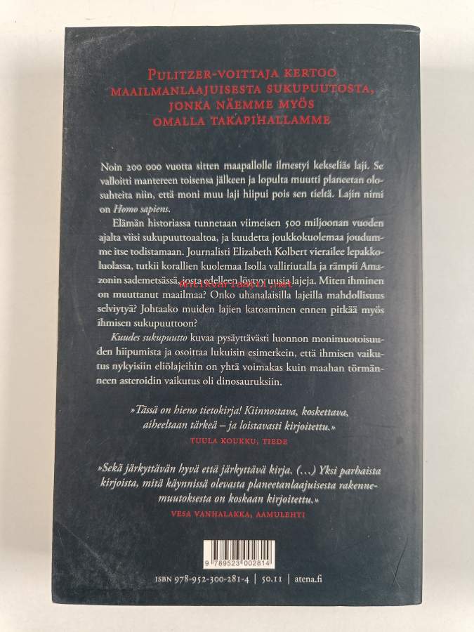 Alkuteos: The sixth extinctionAsiasanat: evoluutio, sukupuuttoon kuoleminen, luonnononnettomuudet, luonnonvalinta
