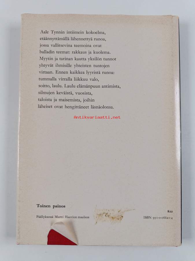 Hyvä. Tarkempi kuntoluokka: K3+ ; Hieman kulumaa kansissa, takana hintalapun jäämää. Kansipaperin kunto: jonkin verran kulumaa/pienoisia repeämiä