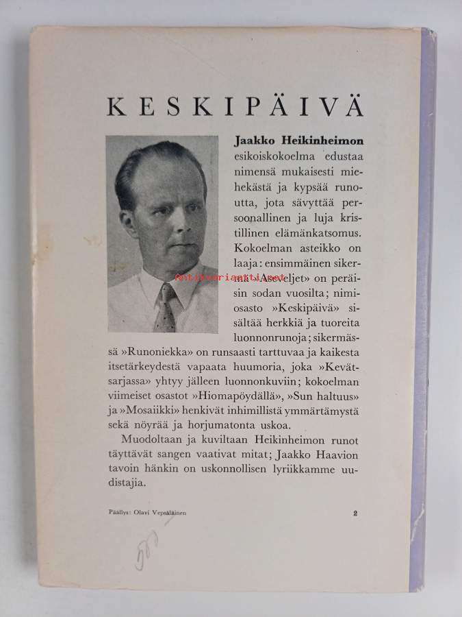 Jaakko Heikinheimo / Keskipäivä : runoja WSOY 1957