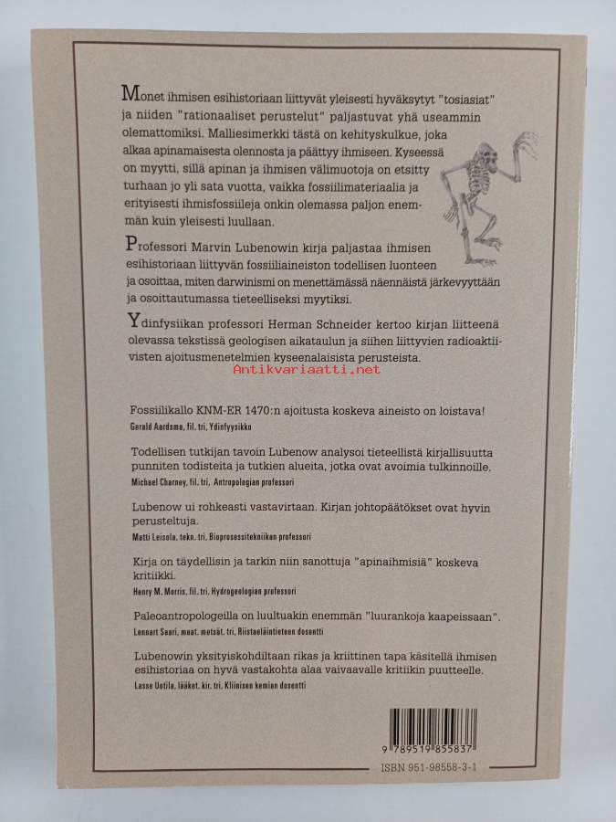 Muu(t) tekijä(t): Matti LeisolaAlkuteos: Bones of contentionAsiasanat: ihminen, fossiilit, kehitysoppi, uskomukset