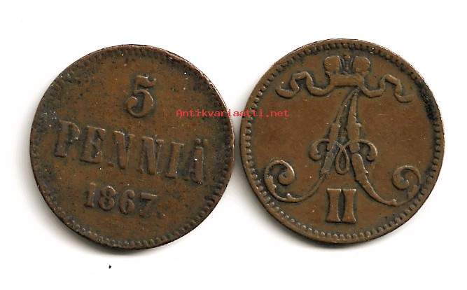 5 penniä 1867 Tsaarin aika