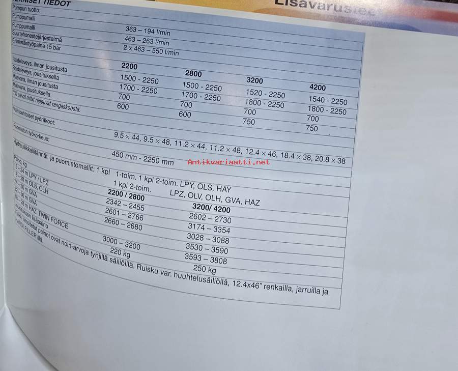 Koko 21 x 30 cm sisältää mallit 2200 l, 2800 l, 3200 l ja 4200l.