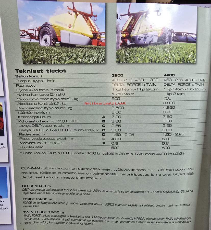 Hardi Commander kasvinsuojeluruiskut -myyntiesite