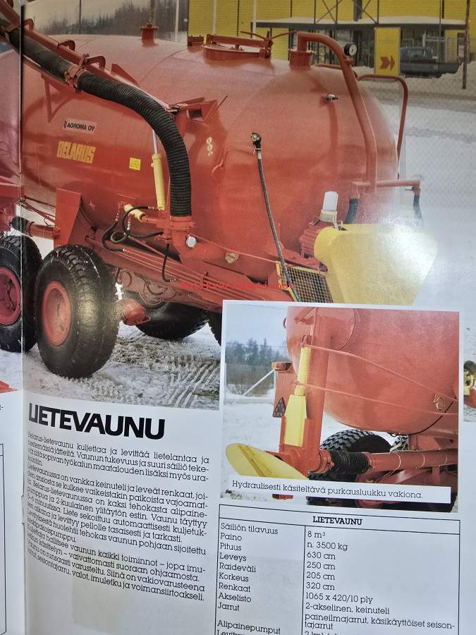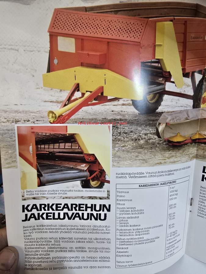 Koko 21 x 30 cm sisältää yleisperävaunun ptu 5, 7 ja 12 mallit sekä jakeluvaunun, lautasniittokoneen, lannoitteen ja kalkinlevitysvaunun ja lietevaunun esittelyn.
