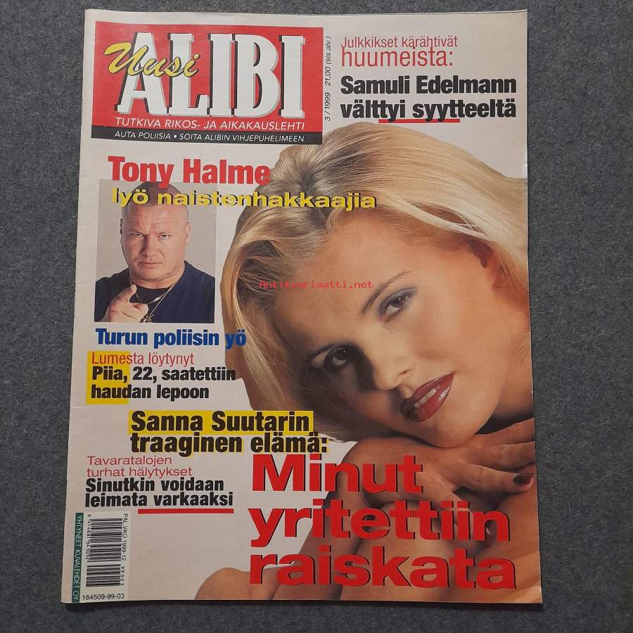 Alibi 3.1999 Lumesta löytynyt Piia 22 saatettiin haudan lepoon, Sanna Suutarin traaginen elämä minut yritettiin raiskata