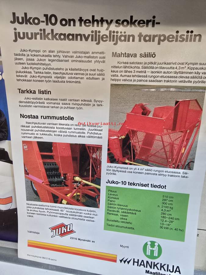 Juko- 10 juurikkaan nostookone myyntiesite.
