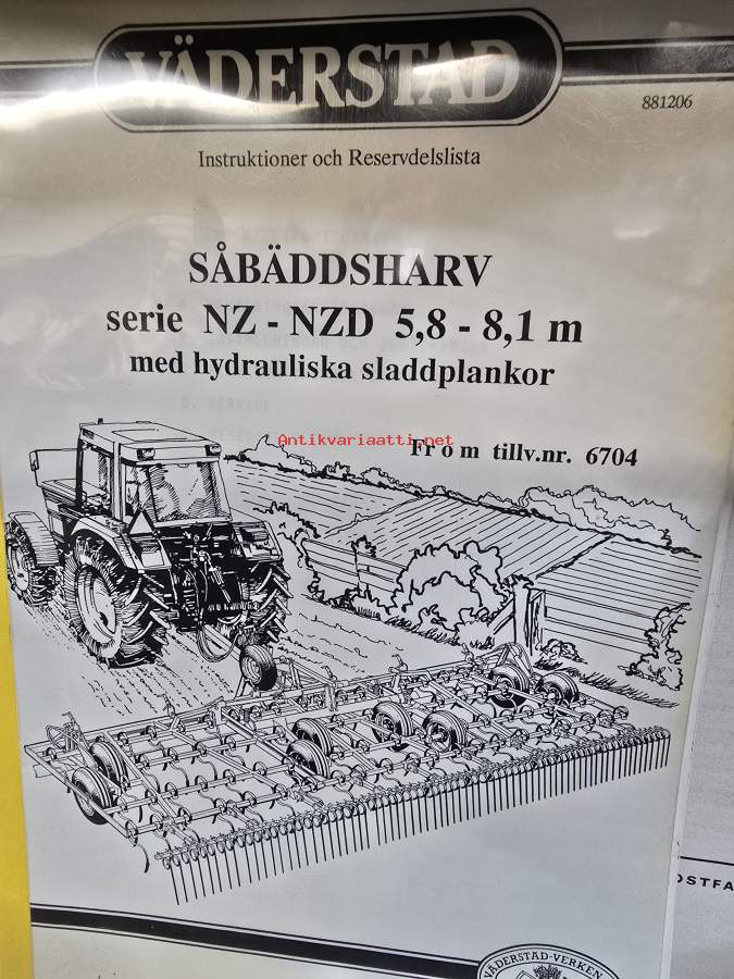 Väderstad Såbäddsharv serie NZG 600 - 1100 -instruktioner och reservdelslista