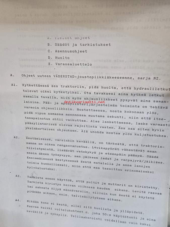 Väderstad joustopiikkiäkeen varaosaluettelo ja yleiset ohjeet