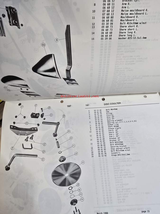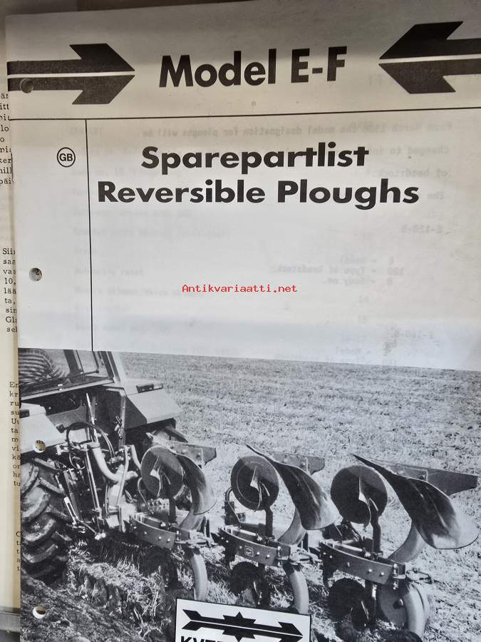 Kvernerland model E-F kyntöauran varaosa luettelo