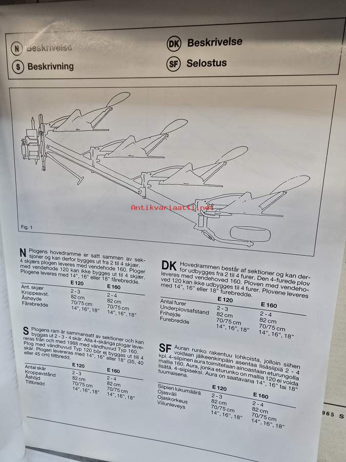 Kverneland Model VD Reversible Plough (from serial no. 3001) Interbody clearance: 95-85-100 cm. Spare Parts list -Varaosaluettelo