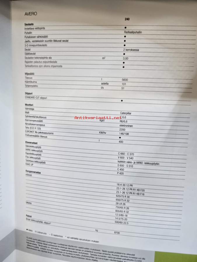 Claas Avero 240 leikkuupuimuri myyntiesite