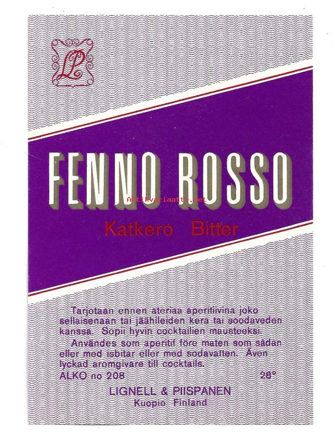 Fenno Rosso Katkero Alko nr 208 viinaetiketti