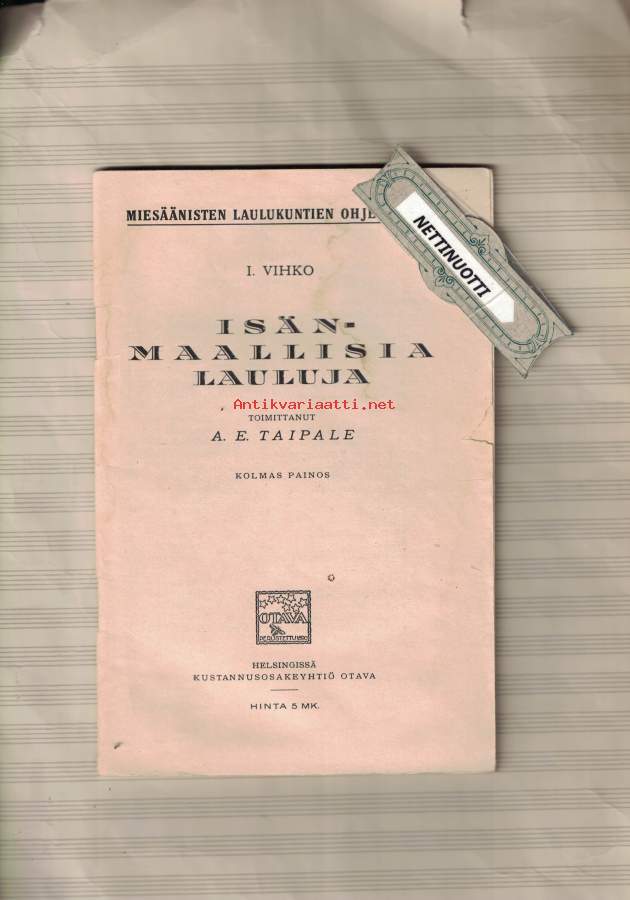 Tekijä:Hela, Martti, 1890-1965. Nimeke:Sikermä Isänmaallisia lauluja kouluille ja nuorisolle Op 14 kirjoittanut ja säveltänyt / Martti
