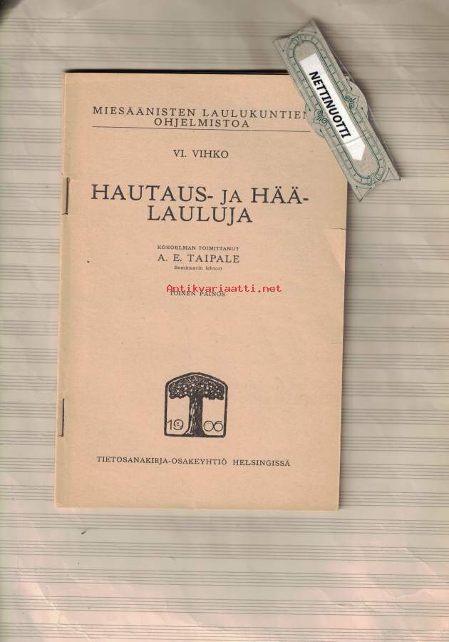 Hautaus ja Häälauluja - Miesäänisten laulukuntien ohjelmistoa VI vihko.