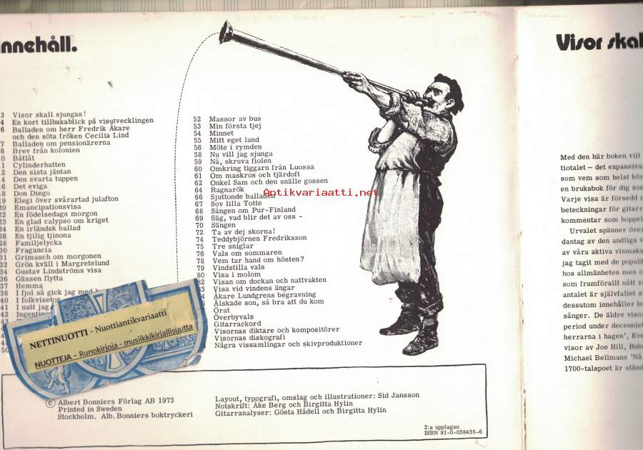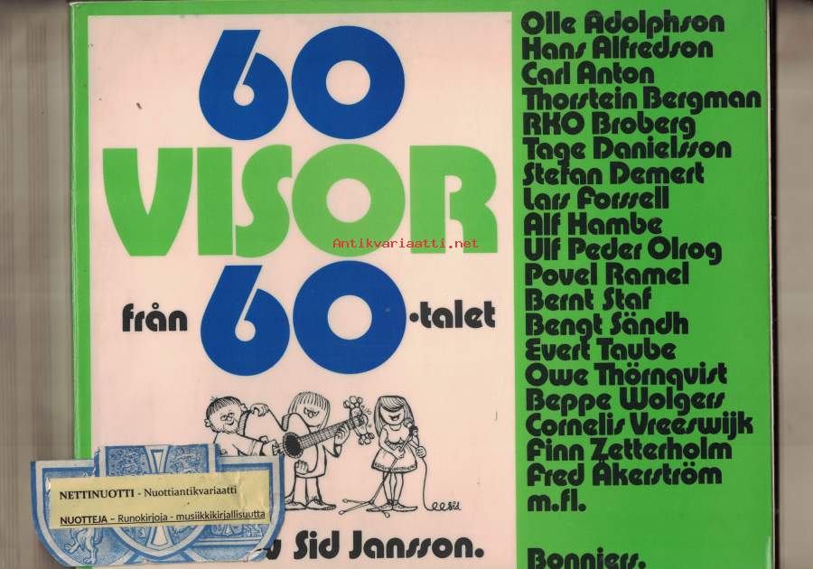 60 Visor från 60-talet, laulukirja, Urval Sid Jansson.