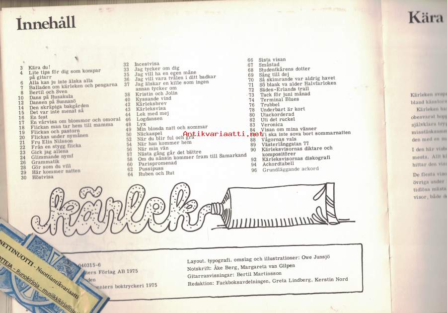 60 Visor från 60-talet, laulukirja, Urval Sid Jansson.