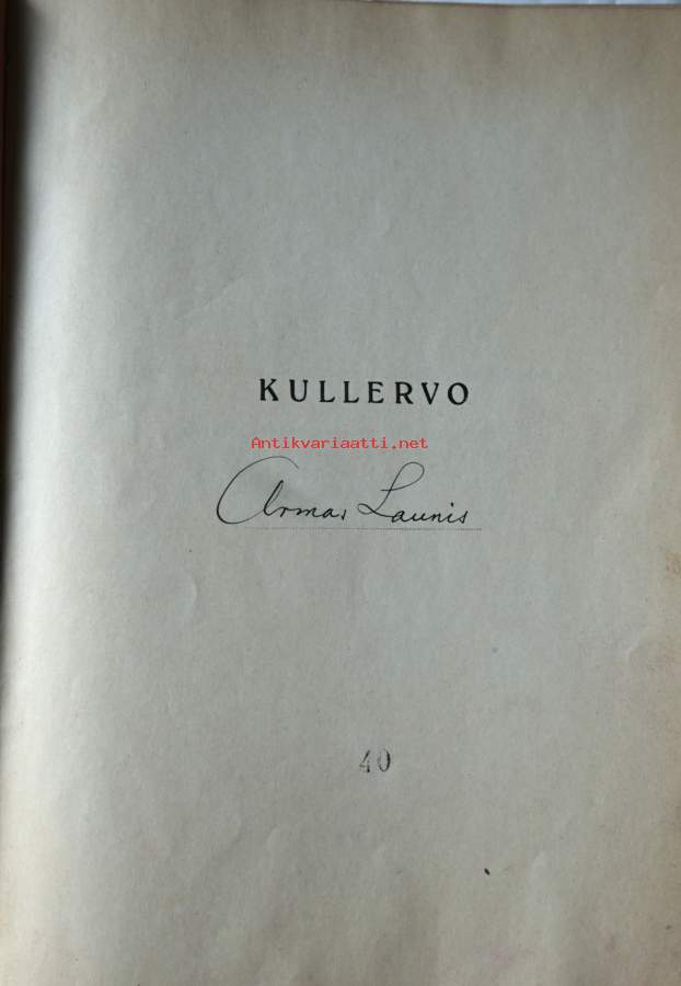 Kullervo : 3-näytöksinen ooppera : Kalevalan ja Aleksis Kiven mukaan Numeroitu Singneerattu