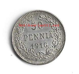 50 penniä 1916 hopeaa