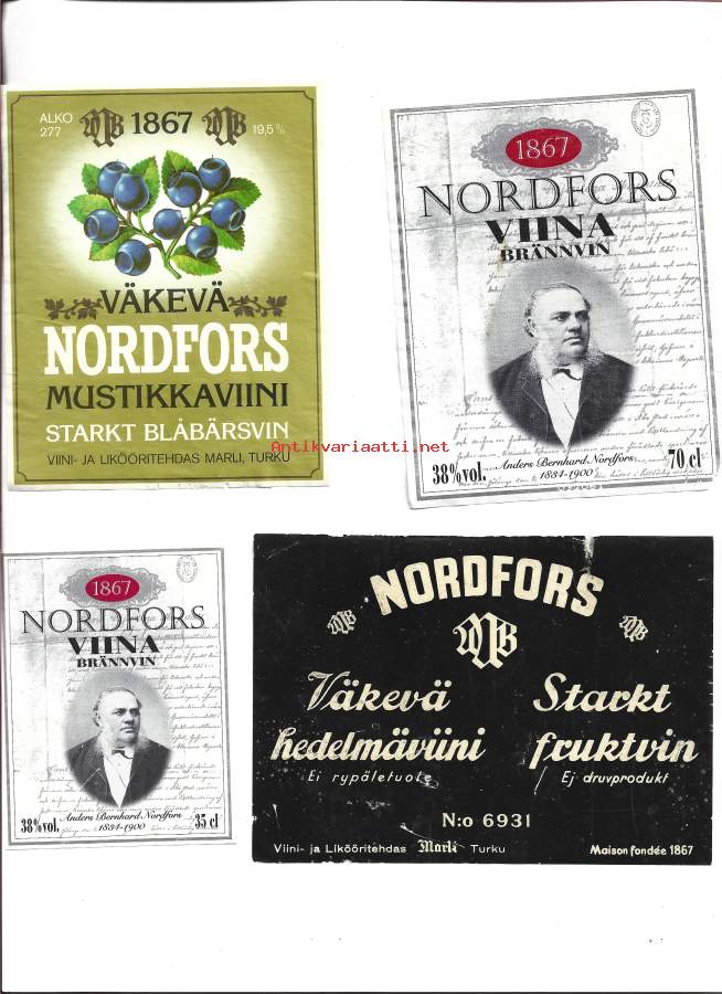 Finlandia, Vermetto, Nordfors ja Muscadonna - viinaetiketti