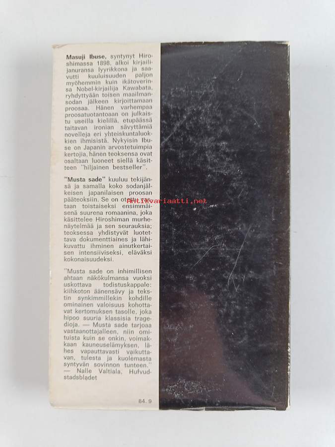 Muu(t) tekijä(t): Jussi NousiainenSarja: Arena-sarjaAlkuteos: Kuroi ameAsiasanat: toinen maailmansota, Japani, sairaudet, menneisyys, hiroshima, ydinsota