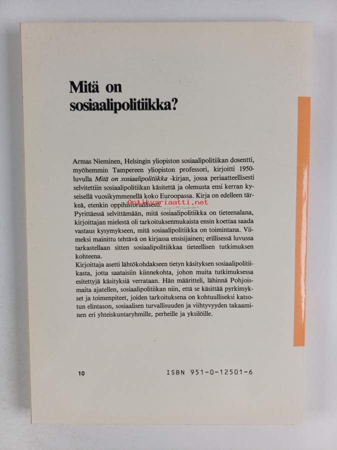 Mitä on sosiaalipolitiikka : tutkimus sosiaalipolitiikan käsitteen ja järjestelmän kehityksestä