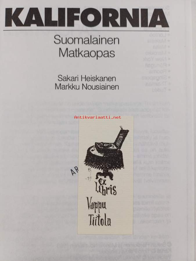 Muu(t) tekijä(t): Markku NousiainenMerkinnät: exlibris: Vappu TiitolaSarja: Suomalainen matkaopasAsiasanat: matkaoppaat