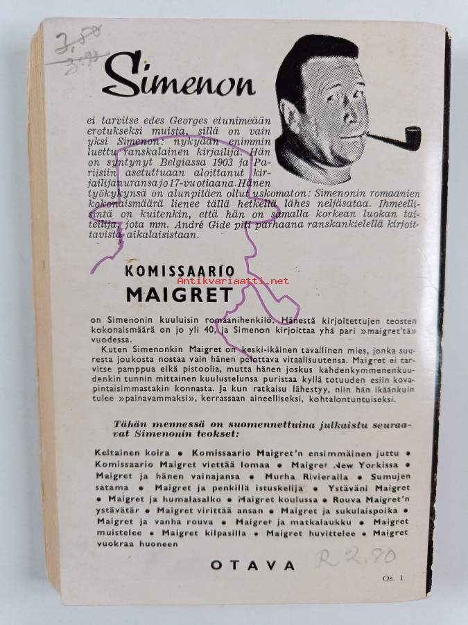 Muu(t) tekijä(t): Anna LouhivuoriSarja: Komissaario Maigret'n tutkimuksiaAlkuteos: Maigret en meubléAsiasanat: salapoliisikirjallisuus, rikoskirjallisuus