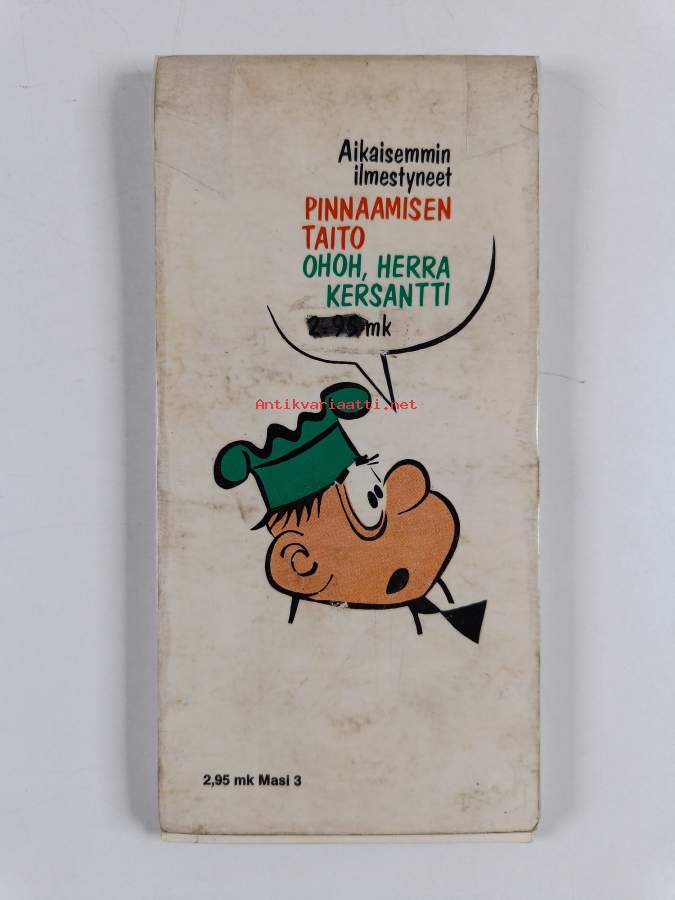 Huonokuntoinen (lukukelpoinen). Pientä kulumaa, jonkin verran tahraisuutta, selkämyksessä hieman vinoutta, muutamalla sivulla merkintää, kontaktimuovipäällystys. sidos repeillyt ja korjailtu teipillä