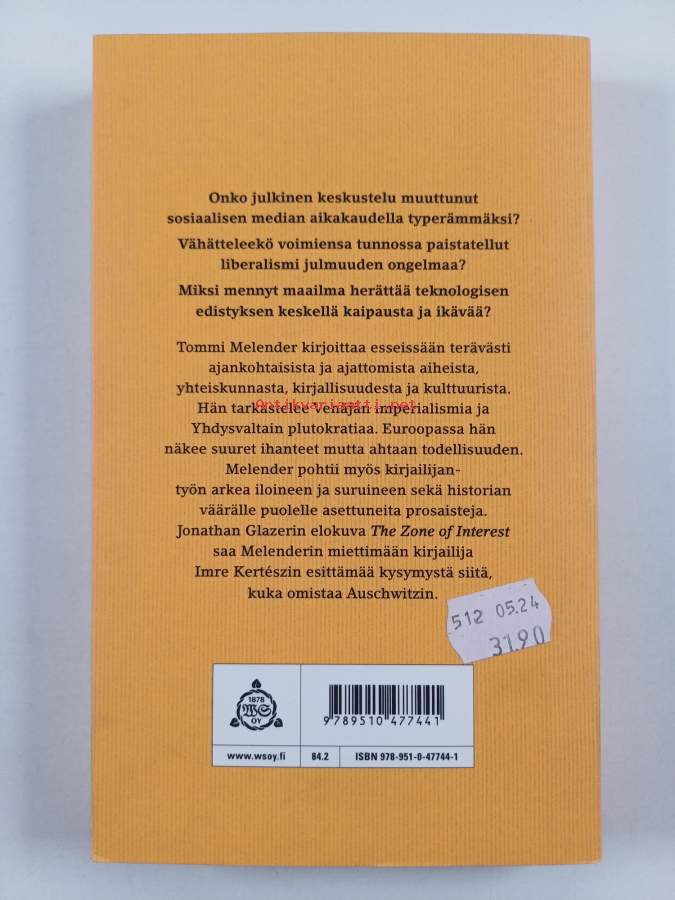 Erinomainen. Tarkempi kuntoluokka: K4- ; Pienoista kulumaa kansissa, takana vanha hintalappu