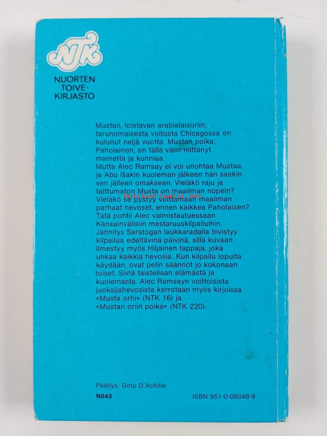 Muu(t) tekijä(t): Merja HeikkiläSarja: Nuorten toivekirjasto 237Alkuteos: The Black Stallion and SatanAsiasanat: nuortenkirjallisuus, hevoskirjat, sarjakertomukset