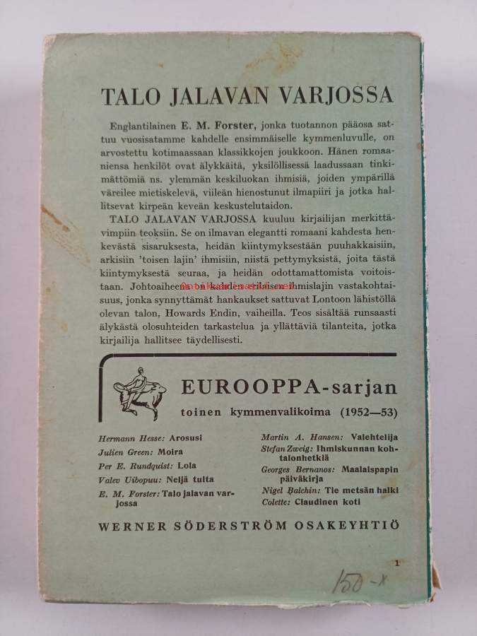 Muu(t) tekijä(t): Eila PennanenMerkinnät: exlibris: Vappu TiitolaSarja: Eurooppa-sarja, toinen kymmenvalikoima 5Alkuteos: Howards End