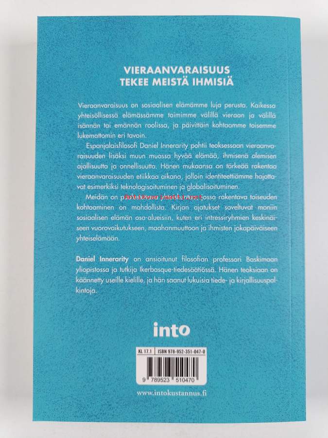 Muu(t) tekijä(t): Antti ImmonenAlkuteos: Ética de la hospitalidadAsiasanat: arvot, identiteetti, etiikka, hyvä elämä, vuorovaikutus, moraali, kohtaaminen, hyveet, toiseus, vieraanvaraisuus, vieraus