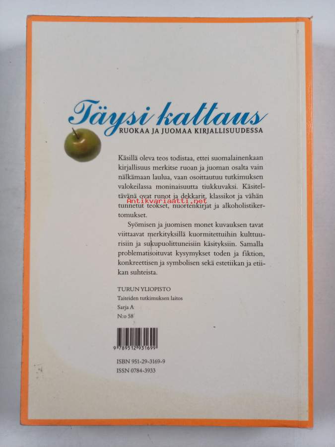 Muu(t) tekijä(t): Heidi Liehu, Päivi Lappalainen ym.Sarja: Turun yliopisto, taiteiden tutkimuksen laitos. Sarja A n:o 58Asiasanat: kirjallisuudentutkimus, ruokakulttuuri, syömishäiriöt, ruoka, kirjallisuus, kaunokirjallisuus, aiheet, nuortenkirjallisuus, juomat, alkoholinkäyttö, rikoskirjallisuus, syöminen, juomatavat