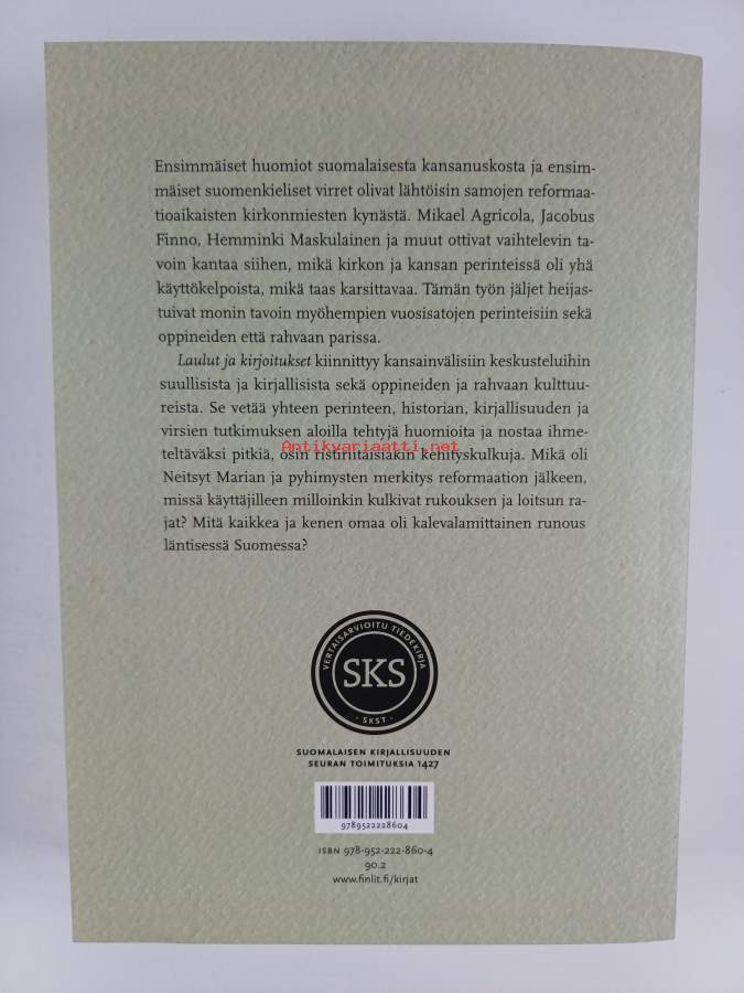 Muu(t) tekijä(t): Senni Timonen, Irma-Riitta Järvinen ym.Merkinnät: omistajamerkintäSarja: Suomalaisen Kirjallisuuden Seuran toimituksia 1427Asiasanat: kansanrunous, vuorovaikutus, kansankulttuuri, kansanusko, folkloristiikka, laulut, legendat, katolisuus, kalevalamitta, genret, reformaatio, suullinen perinne, kirjallinen kulttuuri, suullinen kulttuuri, uuden ajan alku, kirjallistuminen