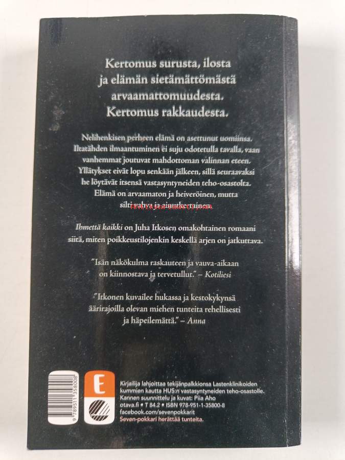 Hyvä. Pienoista tahraisuutta kansissa, hieman kulumaa, selkämyksessä yksi lukutaite