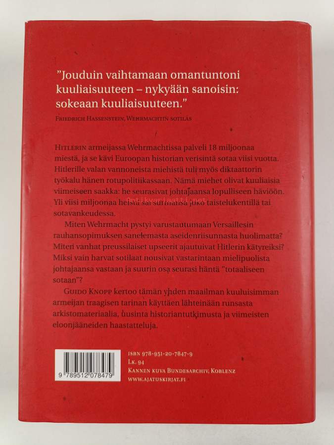 Muu(t) tekijä(t): Mervi Ovaska, Alexander Berkel ym.Alkuteos: Die Wehrmacht : eine BilanzAsiasanat: sotahistoria, upseerit, toinen maailmansota, kansallissosialismi, kolmas valtakunta, armeijat, asevoimat