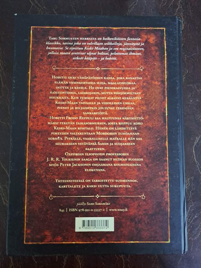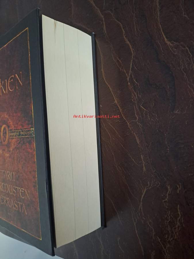 Hyvä. Kirjan mukana tulleessa Keski-maa taitekarttaliiteessä on aivan pieni repeämä. Osassa kannen kulmista on pientä kulumaa ja joidenkin sivujen ylälaidassa on aivan minimaalista taittumaa. Yleisilme kirjassa on erittäin siisti